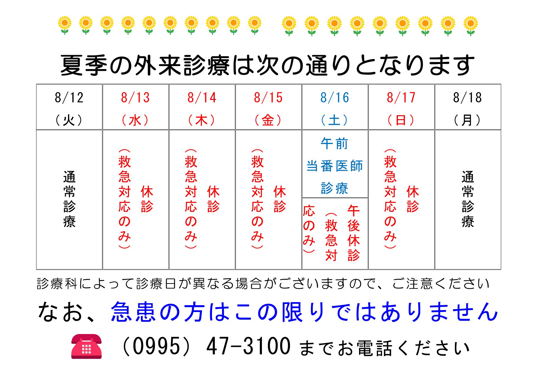 ご来場者様の安全と、救急災害医療を担う当院の責務を考慮した結果の苦渋の選択です。何卒ご理解の程、宜しくお願い申し上げます。